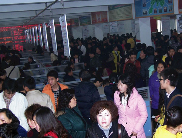 眉州人才市場一直堅(jiān)持每周星期五定期舉辦現(xiàn)場招聘會(huì),2009年2月6日(星期五)春節(jié)后的第一場招聘會(huì)火爆開場,1200平方米的招聘大廳被擠得水泄不通。招聘會(huì)共有103家用人單位進(jìn)場招聘,提供崗位1800余個(gè)。來自市內(nèi)外的3000余名求職者進(jìn)場應(yīng)聘。此場招聘會(huì)參會(huì)的大中專畢業(yè)生占比例較大,技工類、服務(wù)類、醫(yī)療衛(wèi)生類、營銷類崗位需求量較大。