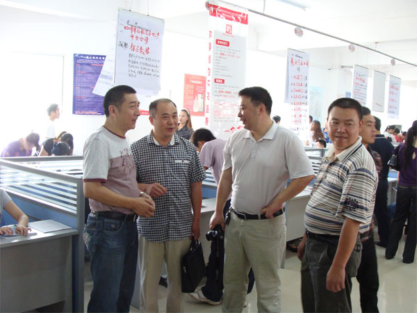 左二:眉山市人力資源和社會保障局黨組成員、調(diào)研員尹萬軍;左一:眉山市東坡區(qū)人力資源和社會保障局局長:詹金松; 右一:眉山市東坡區(qū)人力資源和社會保障局副局長:李思源